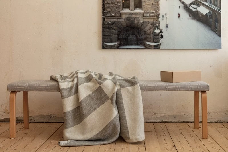Die Decke Gaia von Johanna Gullichsen zeigt ein starkes, grafisches Muster aus reiner Wolle, das der Wohn- oder Schlafzimmereinrichtung einen warmen, weichen Hauch von nordischem Design verleiht. Die Decke Gaia gehört zur Normandie-Kollektion von Johanna Gullichsen, die von der Ära der luxuriösen Ozeandampfer und der langsamen, eleganten Art des Reisens inspiriert ist.