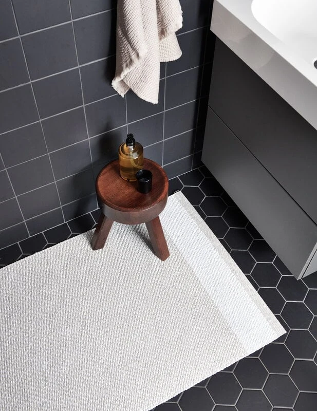 Der aus phthalatfreiem PVC-Flachband gefertigte Kunststoffteppich ist leicht zu reinigen und eine praktische Ergänzung in allen Räumen. Aufgrund seiner schmalen Form lässt sich der Teppich leicht als eindrucksvoller Läufer im Flur, in der Küche oder im Außenbereich verwenden. Der Edit-Teppich wird im schwedischen Dalarna unter Anwendung traditioneller Techniken gewebt.