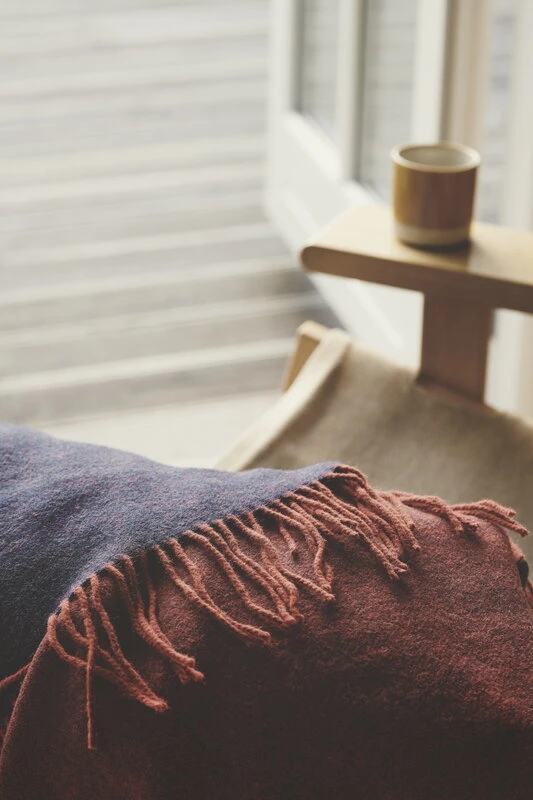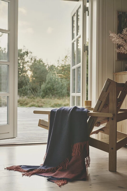 Die Franja-Decke des dänischen Textilunternehmens Silkeborg Uldspinderi besticht durch ihre herrlichen Farben und ihre angenehme Haptik. Die doppelseitige Decke hat auf beiden Seiten unterschiedliche Farben. Anders als bei den meisten Decken sind die Fransen an den Längsseiten angebracht. Die von Margrethe Odgaard entworfene Franja-Decke besteht aus einer Mischung aus feiner Wolle und Baby-Alpakawolle, die sie unglaublich warm, weich und leicht macht. Die Maße der Decke sind 170 x 140 cm.