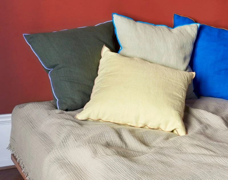 Das Kissen Outline von HAY verbindet klassischen Stil mit modernen, farbenfrohen Details. Das Kissen Outline ist aus einer bequemen Baumwoll-Leinenmischung gefertigt und hat an den Rändern eine Paspelierung in Kontrastfarbe. Verbessern Sie die Stimmung in Ihrem Schlaf- oder Wohnzimmer mit einer frischen Interpretation von Komfort, die Stil in den Vordergrund stellt.