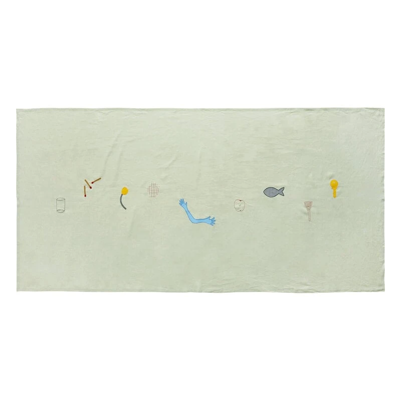 Die Sobremesa-Tischdecke von HAY wurde von der ägyptischen Köchin und Künstlerin Laila Gohar entworfen, um das Tischdecken und Essen zu einem besonderen Erlebnis zu machen. Die Tischdecke aus Leinengemisch ist mit ausgefallenen Stickereien und applizierten Mustern geschmückt und sie kann sowohl im Alltag als auch zu festlichen Anlässen als verspielte und praktische Tischdekoration dienen.