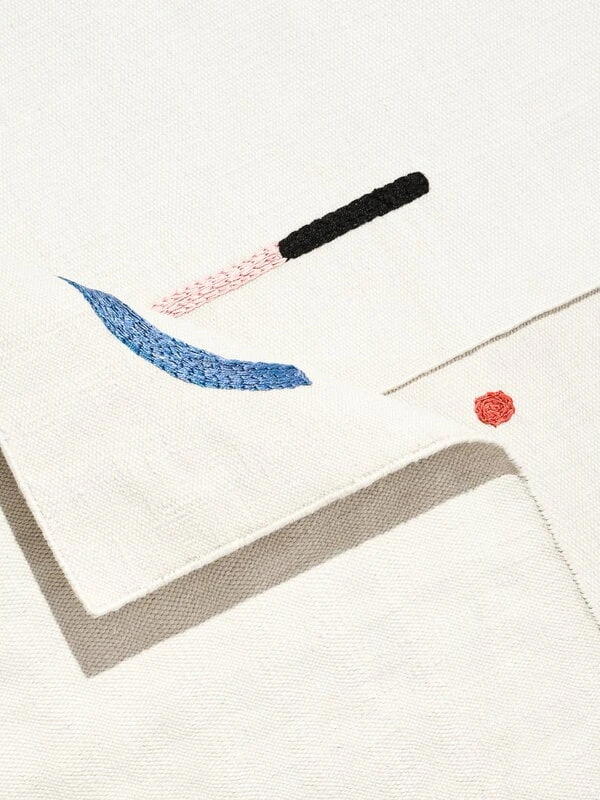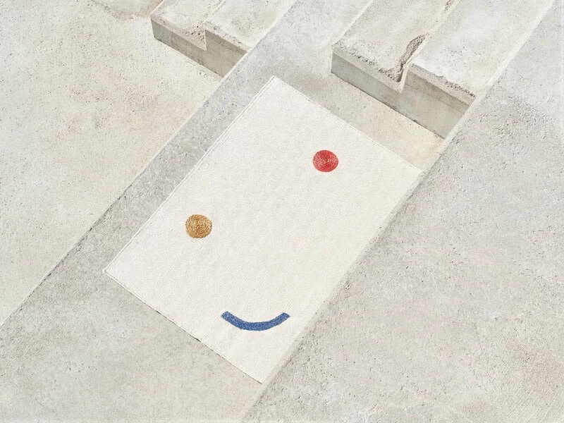 Der von Tomi Leppänen für MUM’s entworfene Hymiö-Teppich ist mit einem abstrakten Muster verziert, das auf typografischen Elementen basiert. Der Teppich ist Teil der Typewriter-Kollektion von Leppänen und ist vom Bauhaus und insbesondere von der Arbeit der Textildesignerin Anni Albers inspiriert, die in den 1930er Jahren damit experimentierte, ihre Schreibmaschine zur Erzeugung von Mustern zu verwenden. Das minimalistische Muster von Hymiö (finnisch für „Smiley“ oder „Emoticon“) besteht ebenfalls aus den Punkten und Strichen einer Schreibmaschine.