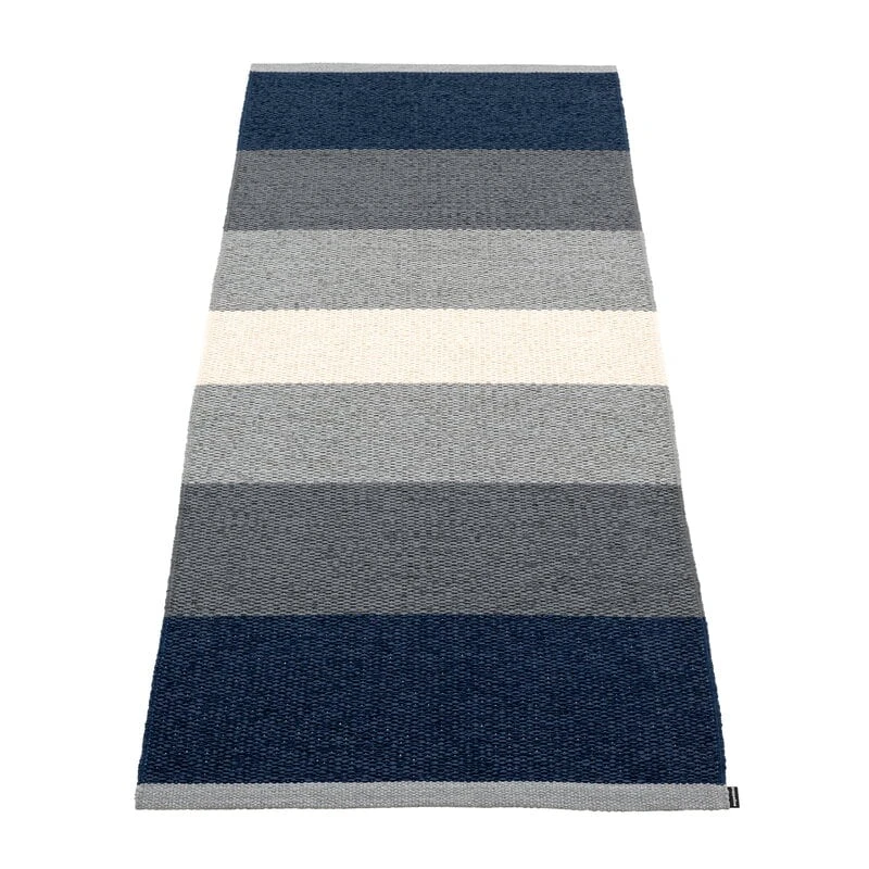 Der aus phthalatfreiem PVC-Band gefertigte Teppich ist sehr pflegeleicht und damit eine praktische Wahl für alle Räume, vom Kinderzimmer bis zur Küche. Dank seiner schmalen Form ist der Teppich auch ein idealer Flurläufer, und er kann sogar im Freien auf dem Balkon, der Veranda oder der Terrasse eingesetzt werden. Der im schwedischen Dalarna hergestellte Teppich wurde mit traditionellen Techniken gewebt und ist in mehreren Farbvarianten erhältlich.