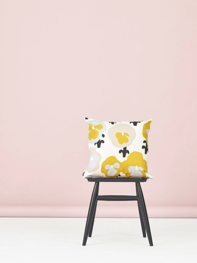Der Kissenbezug Orvokki von Kauniste zeigt Hannele Äijälä entzückendes florales Muster mit großen Veilchen in Gelb, Rosa und Hellblau. Der im Siebdruckverfahren bedruckte Kissenbezug besteht aus einer Mischung aus Leinen und Baumwolle und hat einen verdeckten Reißverschluss an der Unterseite. Geeignet für Innenkissen mit den Maßen 50 cm x 50 cm.