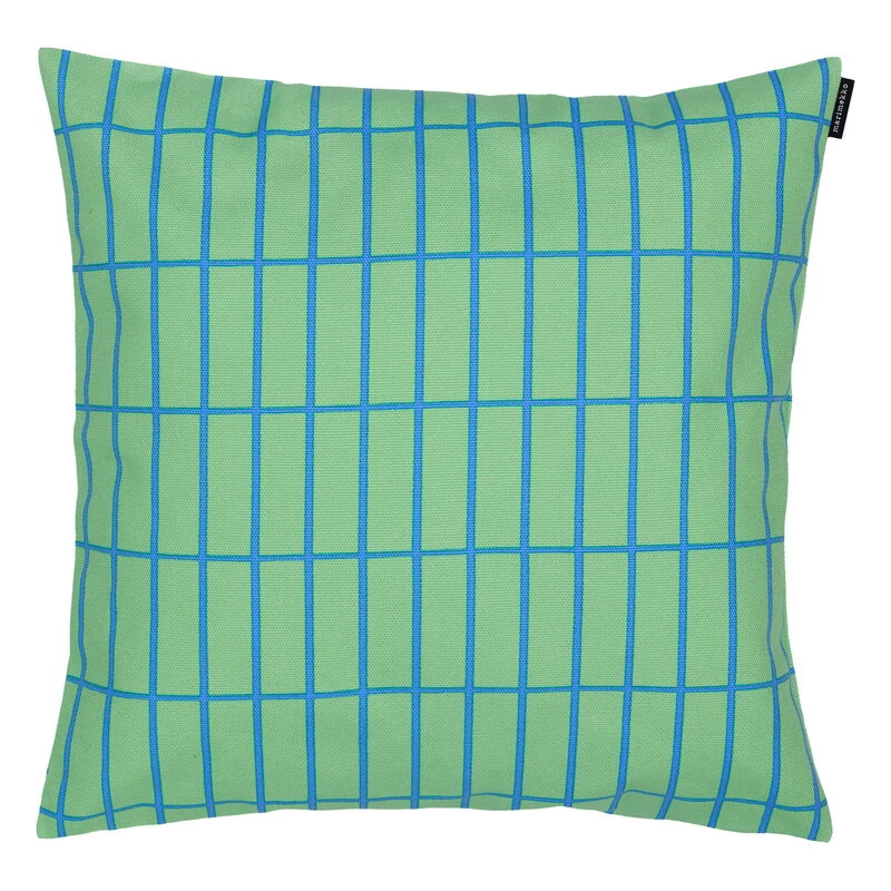 Den Kissenbezug von Marimekko ziert das schlichte Tiiliskivi-Muster aus dem Jahr 1952. Wussten Sie, dass das klassische Marimekko-Muster von Armi Ratia, der Gründerin des Unternehmens, entworfen wurde?