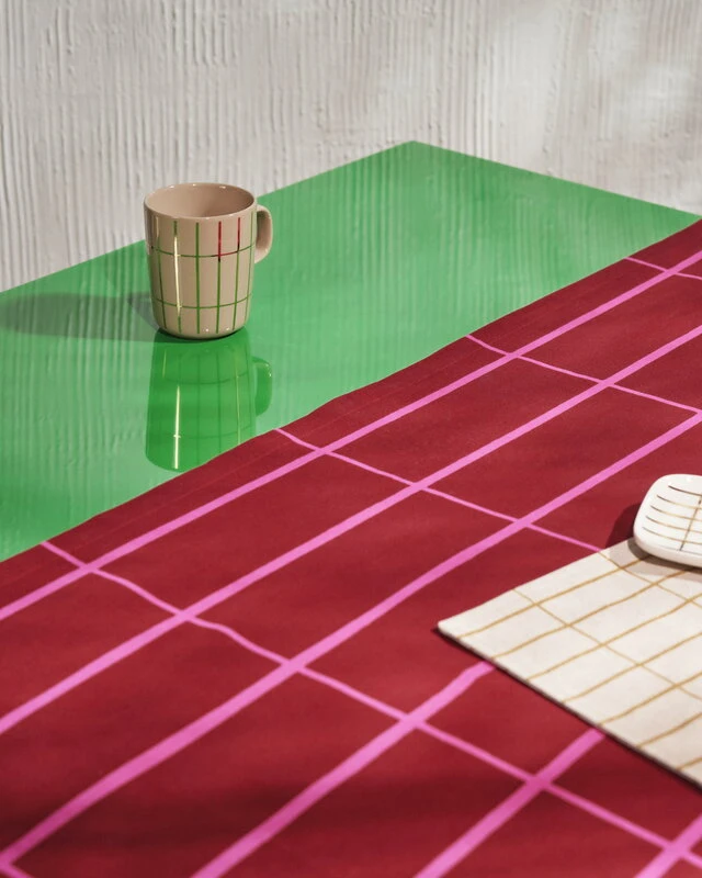 Das Pieni-Tiiliskivi-Tischset von Marimekko zeigt ein einfaches Gittermuster, das 1952 von Armi Ratia entworfen wurde. Der zeitlose Tiiliskivi eignet sich perfekt für minimalistische Interieurs und schafft einen faszinierenden Kontrast mit reichen und farbenfrohen Mustern.