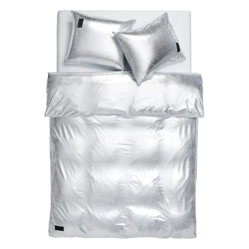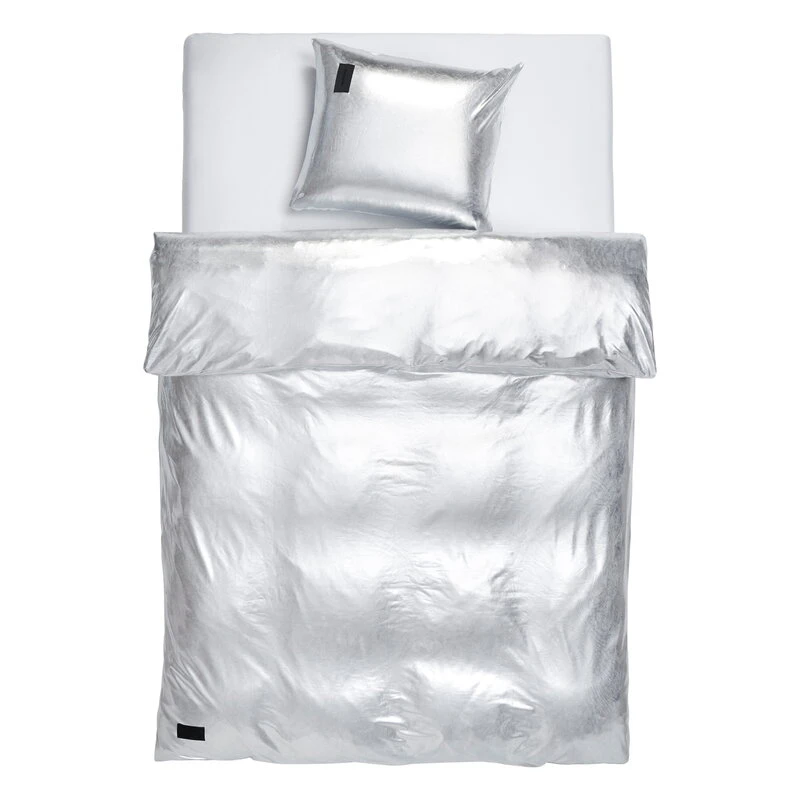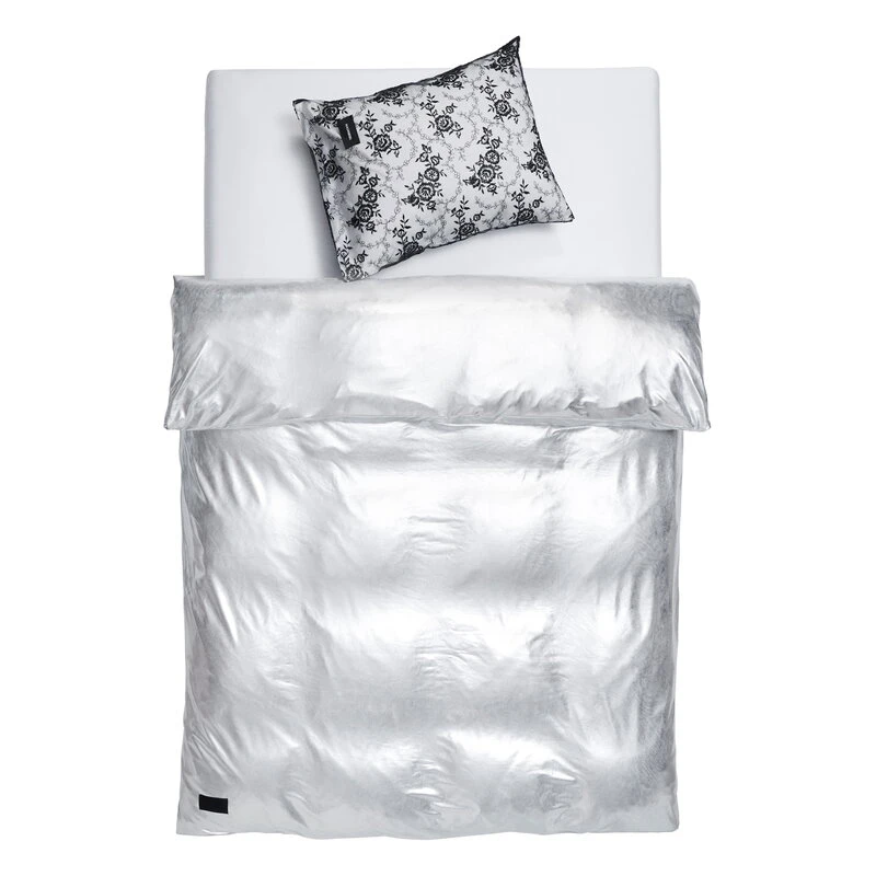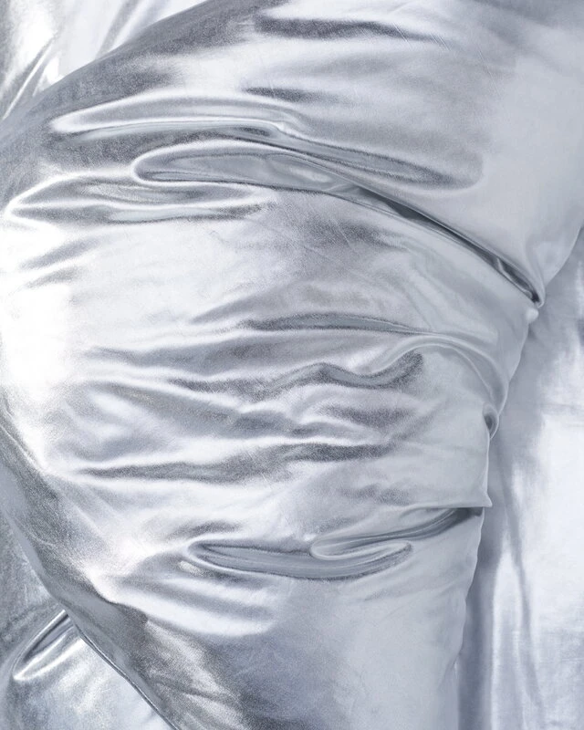 Der Bettbezug Nude Metallic Jersey von Magniberg verleiht dem Schlafzimmer einen Hauch von Discokugel-Glitzer und Pop-Art-Einflüssen. Die „Nude Metallic Jersey“-Bettwäsche ist aus Polyester und Elastan gefertigt, um ein dünnes, flexibles und extrem metallisches Finish zu erzielen. Der schillernde Glanz des Silbers zieht die Blicke auf sich und bringt Sie zum Lächeln.
