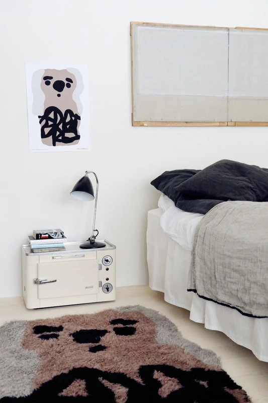 Der Semi Koala von Mum ist ein großer und flauschiger Wandbehang, der mit einem liebenswerten Koalabären in warmen Brauntönen verziert ist. Dank seiner Größe von 110 x 170 cm kann der Koala auch auf dem Boden als Teppich oder – für zusätzlichen Komfort – auf einem Sessel verwendet werden. Der handgefärbte und -gewebte Teppich wurde von Jenni Tuominen entworfen. Die Wollprodukte von Mum werden in der Werkstatt von Mum in Nordindien aus einheimischer, mulesingfreier Wolle von Hand gewebt, mit großem Respekt für ethische Arbeitsbedingungen und nachhaltige Produktion.